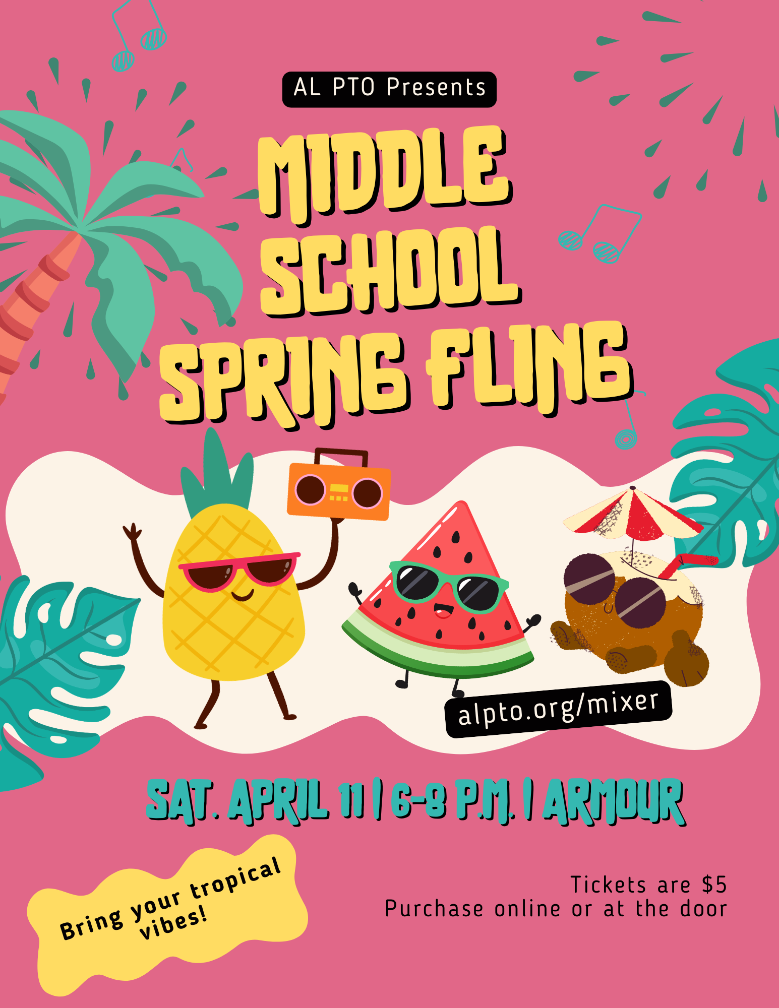 All middle school students are invited to a fun night of dancing! We’re going with a fun tropical theme, so bring your tropical vibes!
